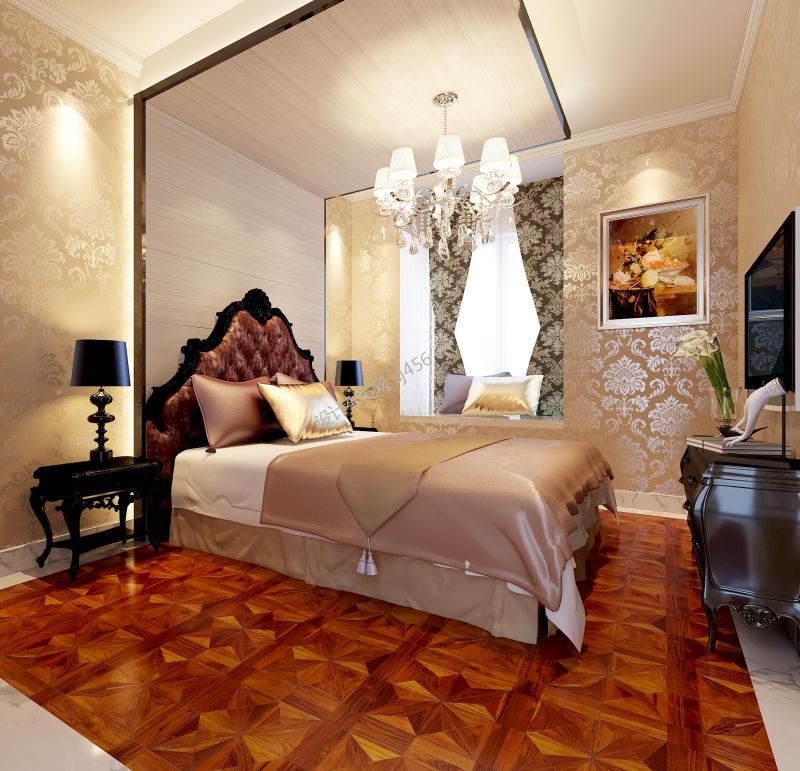 88平新古典风格卧室吊灯装修效果图