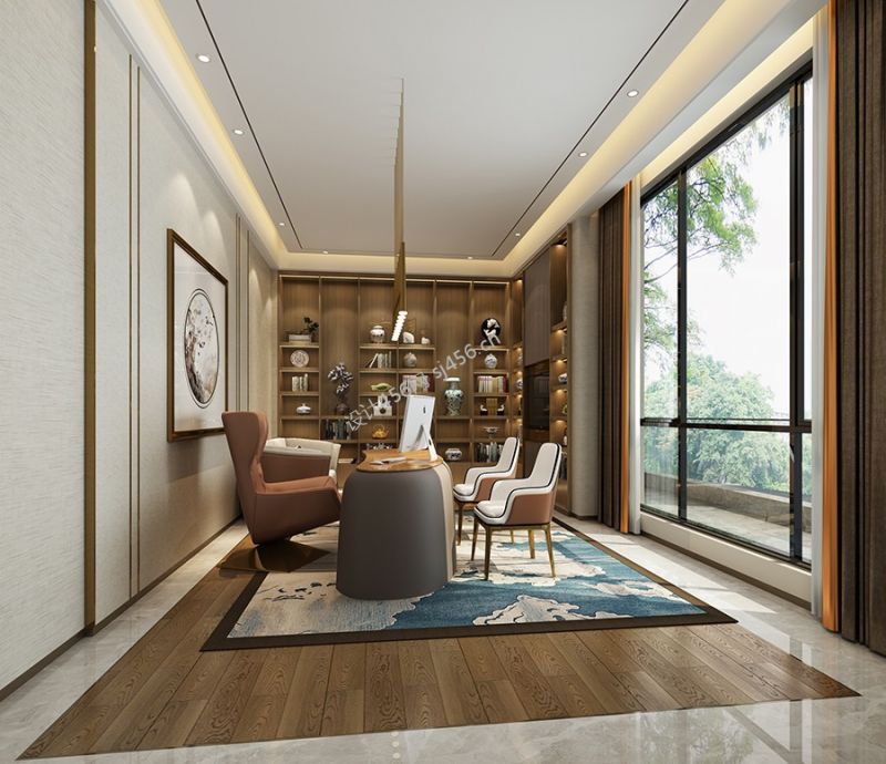 银湖山庄413平米现代中式风格别墅装修案例风效果图