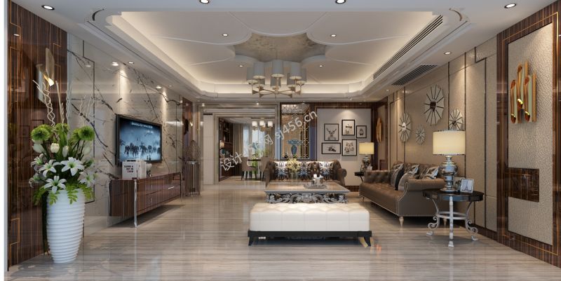 欧式奢华房389.7平米别墅装修案例风效果图