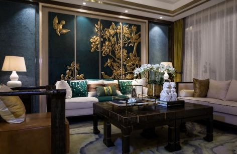 中骏云景府新中式风格114平米三居室装修案例风效果图