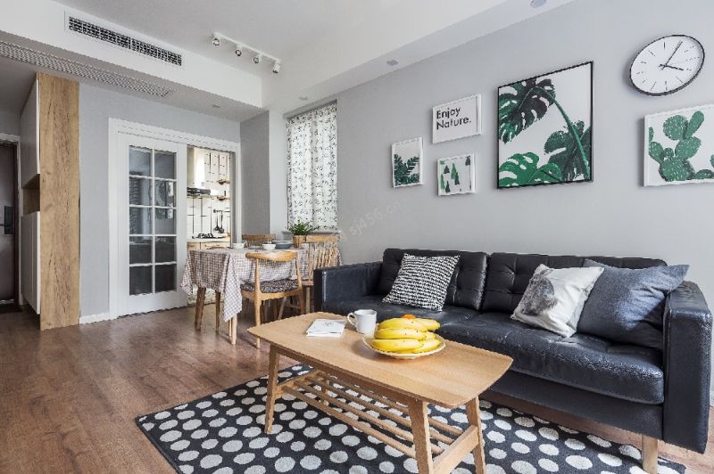 现代风格102平米二居室客厅沙发背景墙装修设计图