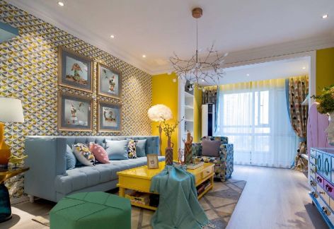 锦顺星苑94平简约风格三居室装修案例风效果图