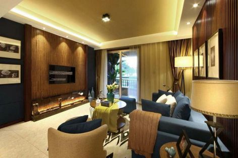 卓越荣津瀚海湾110平中式风格三居室装修案例风效果图