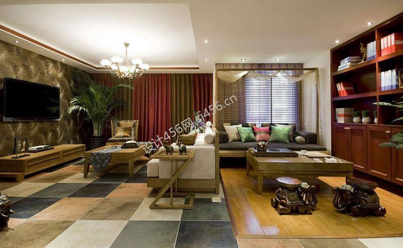 碧桂园观麓花园112平东南亚风格装修案例风效果图