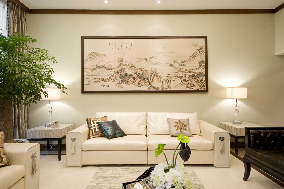 对于中式客厅颜色的搭配,有人喜欢暖色调,有人偏爱冷色调;有人喜欢色调明度高一些,有的则喜欢黯淡色调。不过,一般来讲,客厅往往以高明度、低纯度的色调为宜,这也是现在较流行的“背景式设计”思想之一。