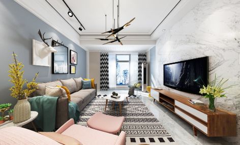 卓越誉珑北欧风格93平米一居室装修效果图案例风效果图