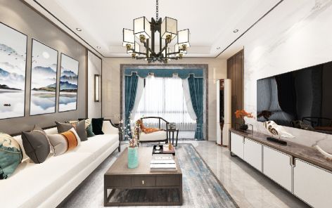 京基·御景峯新中式风格92平米二居室装修效果图案例风效果图