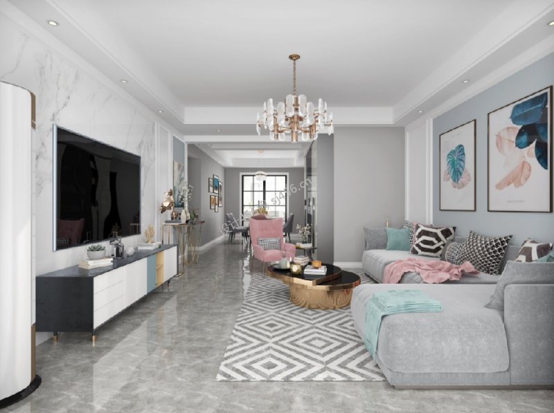 颐安·都会中央五期轻奢风格95平米三居室装修效果图案例风效果图