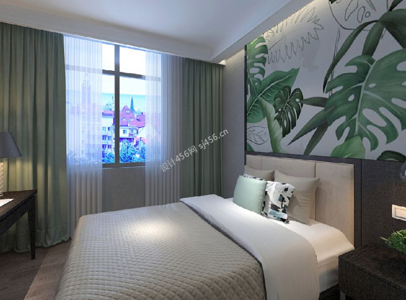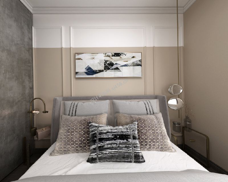 现代风格三居室卧室床头背景墙壁纸装修效果图