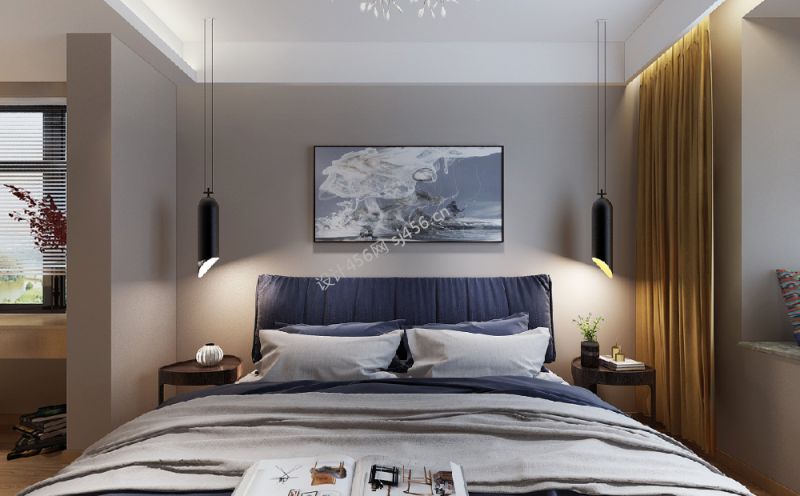 现代风格二居室卧室床头背景墙装饰装修效果图