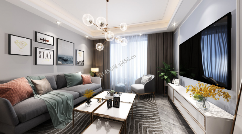松河瑞园现代风格101平米三居室装修效果图案例风效果图