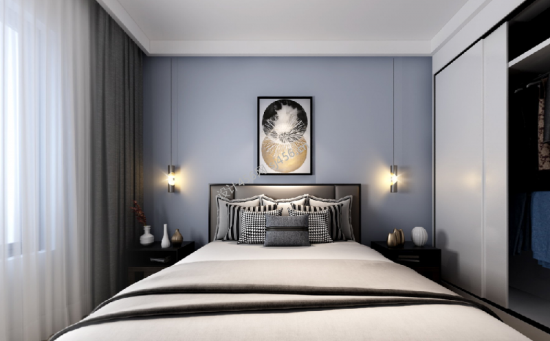 简约风格二居室卧室床头背景墙装饰装修效果图