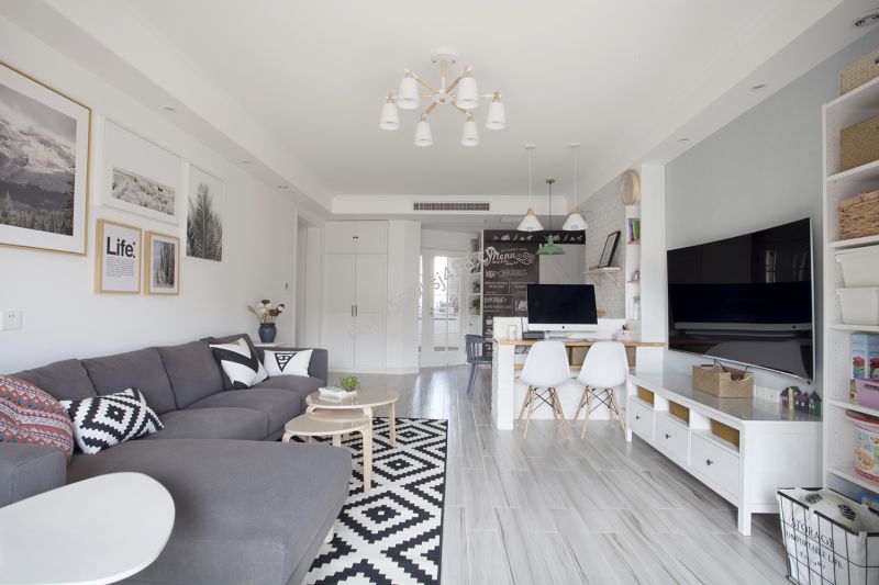 今日香沙御景园80平北欧风格二居室装修案例风效果图