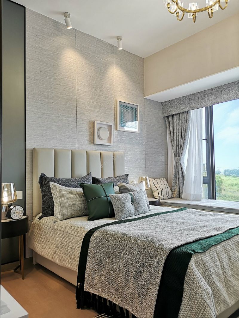 绿景红树湾壹号轻奢风格108平米二居室装修设计图案例风效果图