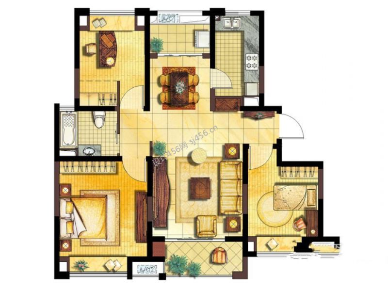 现代简约风格118.8平米三室两厅装修案例风效果图