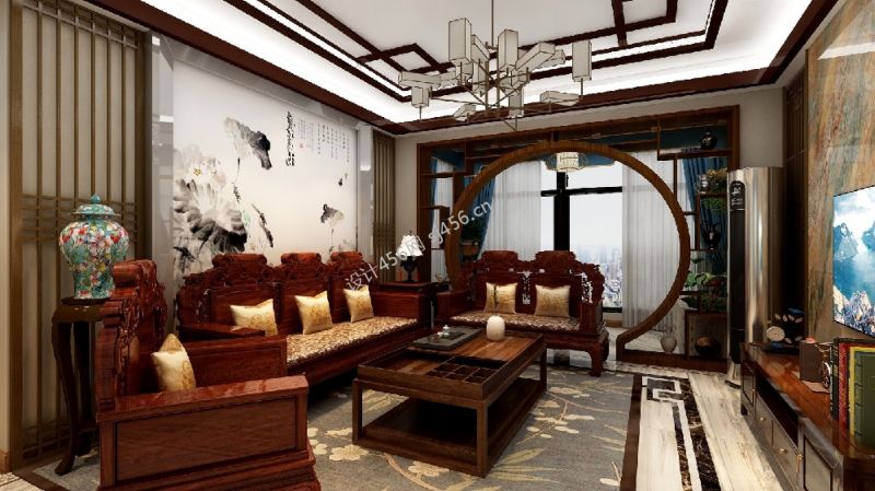 深圳馨源装饰 君成雍和园中式风格124平米装修案例
