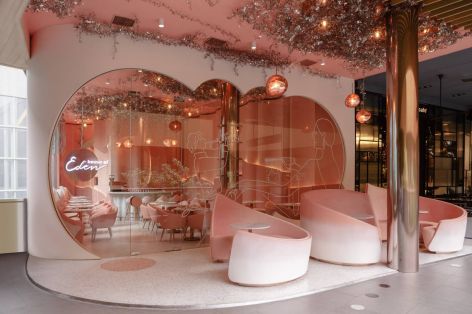 220平米现代时尚桃色系主题餐厅装修案例风效果图