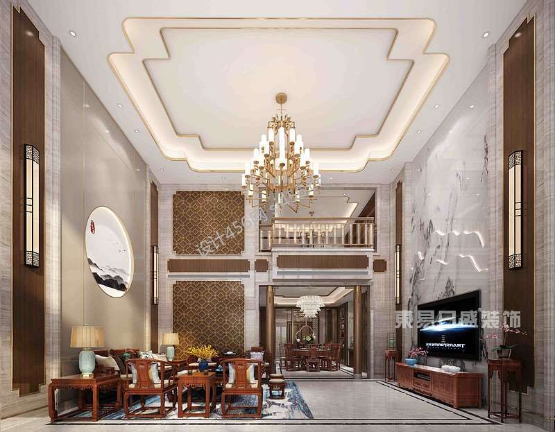 【深圳东易日盛】世纪华夏365平-新中式风格设计案例-高端装修效果图展示风效果图