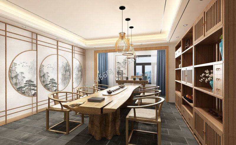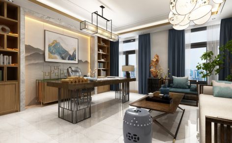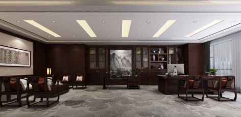 办公室新中式风格505平米装修案例风效果图