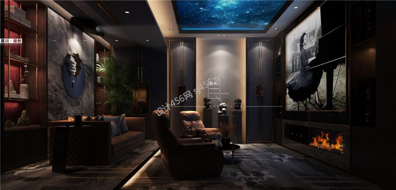 784平米中式风格别墅影音室装修效果图