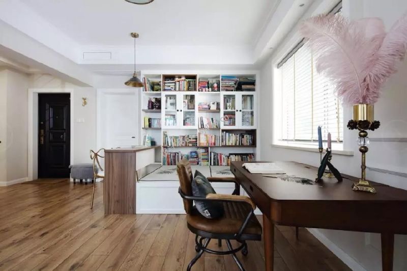 美式风格100平米书房书桌设计效果图