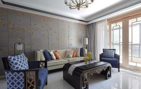 新天鹅堡新中式风格145平米三居室设计案例风效果图