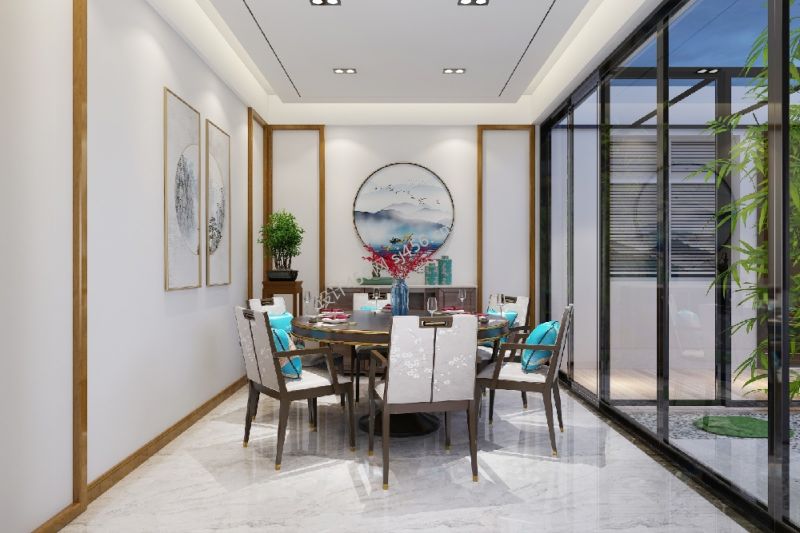 凯旋湾花园新中式风格331平米装修案例风效果图