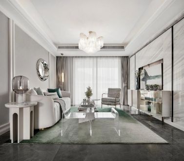 宏发前城轻奢风格95平米三居室装修设计案例风效果图