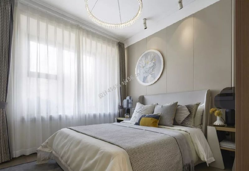 轻奢风格三居室卧室床头背景墙造型装修设计