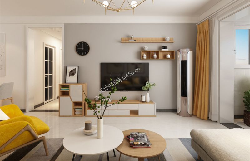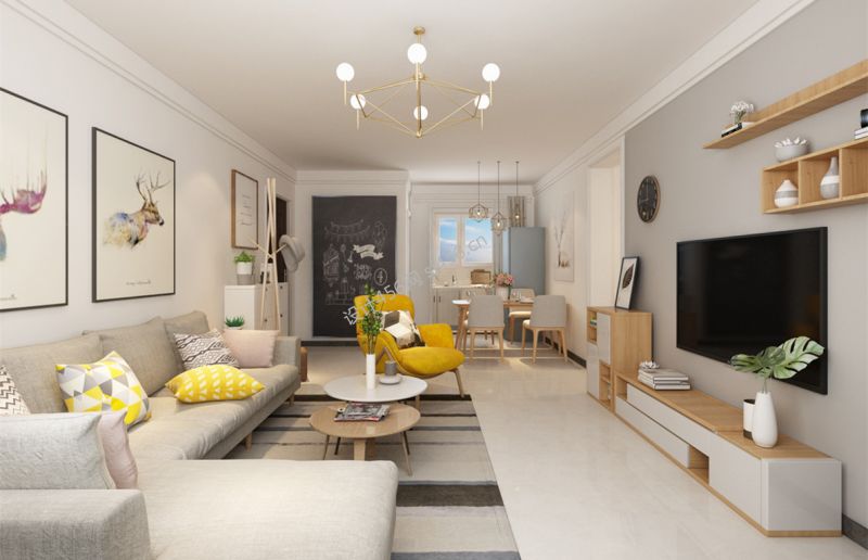 现代风84.61平米两室两厅客厅沙发装修效果图