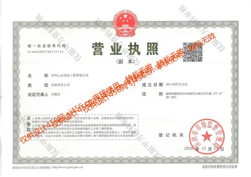 深圳心品建设工程有限公司于2011年07月18日成立。法定代表人刘德忠,公司经营范围包括:一般经营项目是:建筑装饰工程设计与施工;房屋建筑工程;建筑幕墙工程设计与施工;建筑电子智能化设计与施工、维护及保养;消防设施工程设计与施工;机电设备安装工程;钢结构工程;金属门窗工程;建筑防水防腐保温工程;文化建设工程设计与施工;雕塑、壁画设计与施工;结构补强工程;体育设施、展览陈列工程设计与施工、上门安装维。为国家建设部核定的建筑装修装饰壹级施工企业、乙级设计单位,并拥有建筑幕墙工程专业承包资质贰级、 消防设施工程专业承包资质贰级、电子与智能化工程专业承包资质贰级、 防水防腐保温工程专业承包资质贰级、建筑机电安装工程专业承包资质叁级、钢结构工程专业承包资质叁级、建筑工程施工总承包叁级等资质。施工管理、材料配送、售后服务于一体的专业装饰企业。