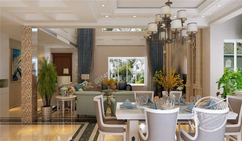 泰安九创装饰 秀水湾简约欧式260平别墅装修案例