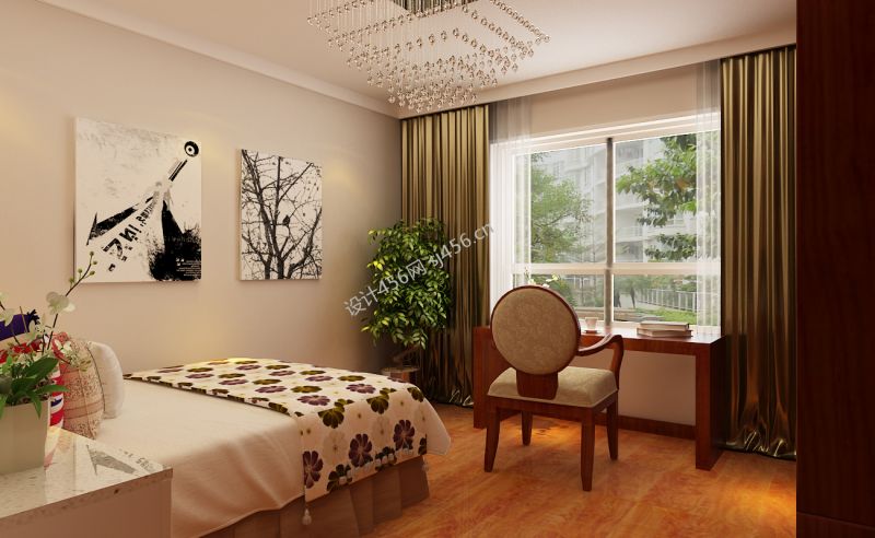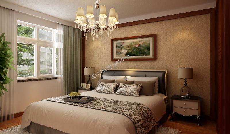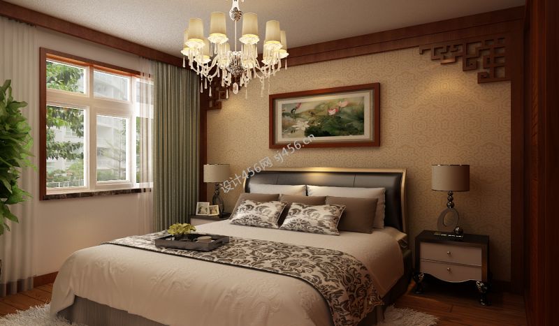 现代中式卧室效果图