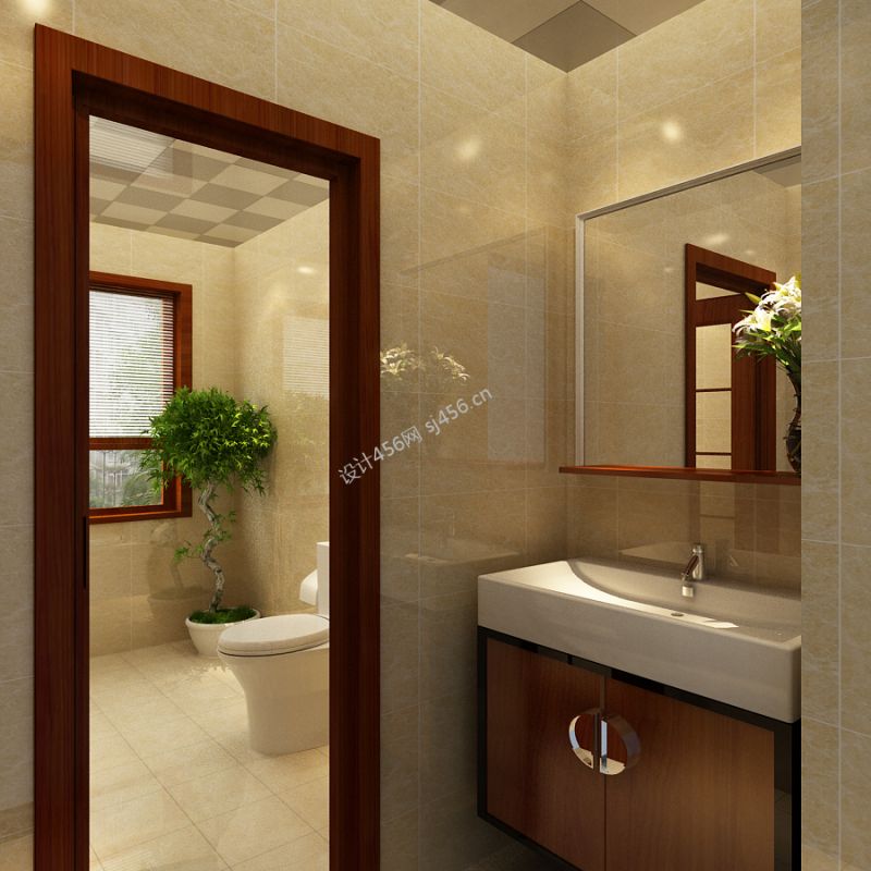现代简中式卫生间效果图