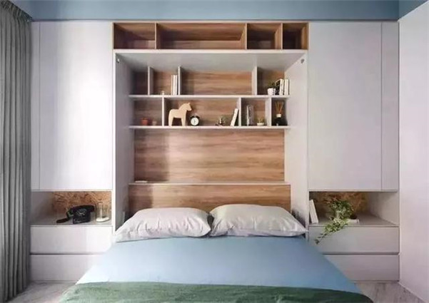 [泰安九创装饰]小户型卧室床头背景墙收纳设计,好看又实用!