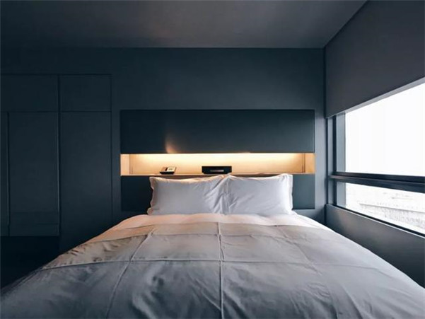 把卧室的床给做成嵌入式的,四周都环绕着柜子,中间留空的区域作为背景墙,刷上自己喜欢的墙漆或者铺贴壁纸,好看又实用。