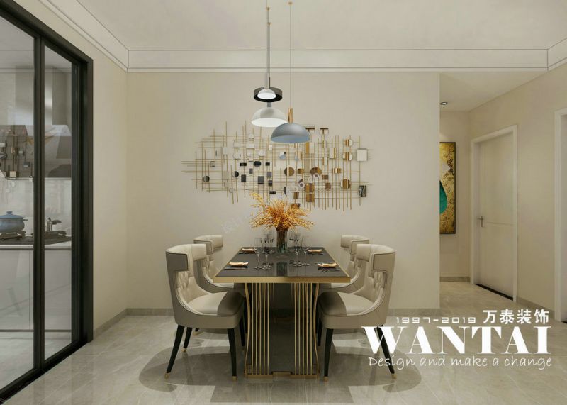 现代轻奢风格120平三居室餐厅餐桌装修设计图