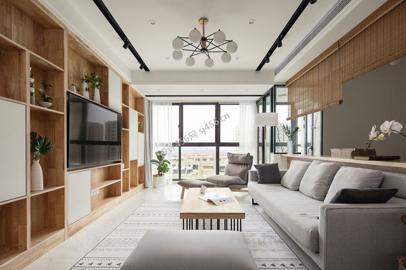 现代风格三居室125平客厅电视背景墙装修效果图