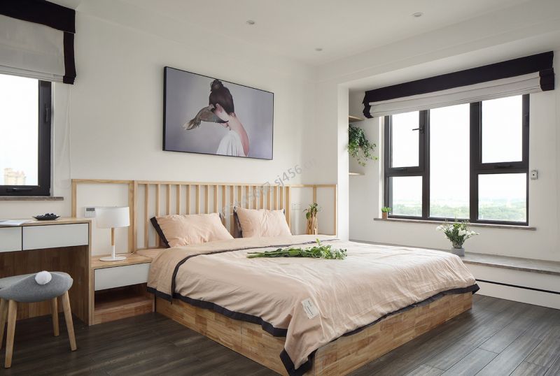 现代风格三居室125平卧室床装修效果图