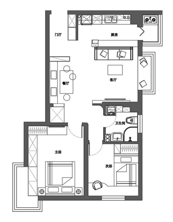 [泰安星艺装饰]80㎡二居室装修案例,客餐厨一体设计!
