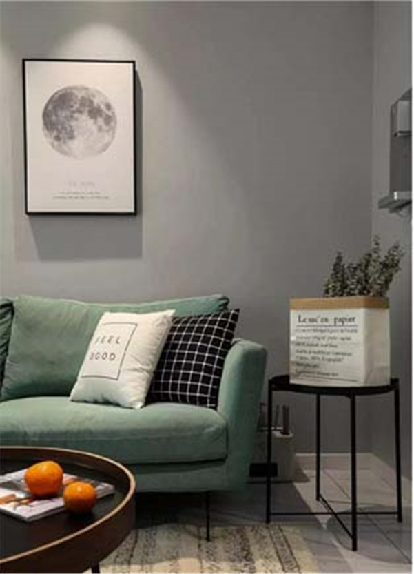 白色打底的地图装饰画也让墙面丰富了不少,淡绿色的沙发。