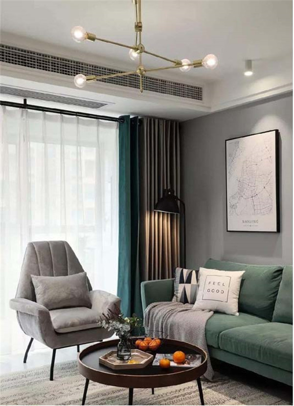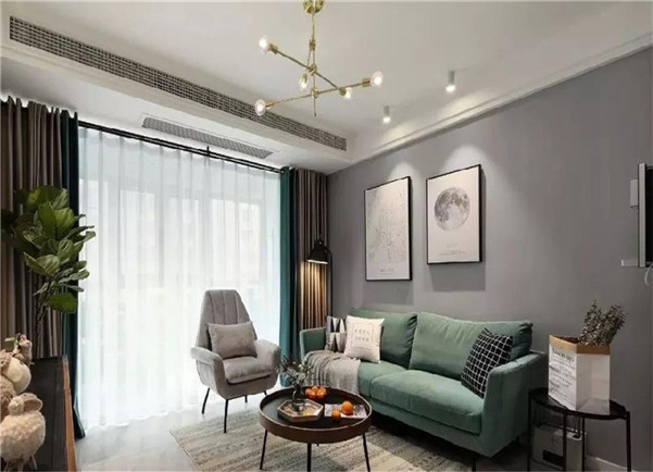 客厅,选择在软装布艺沙发和窗帘中,加入淡绿色元素,感觉整个空间都变得清新有层次感了许多。