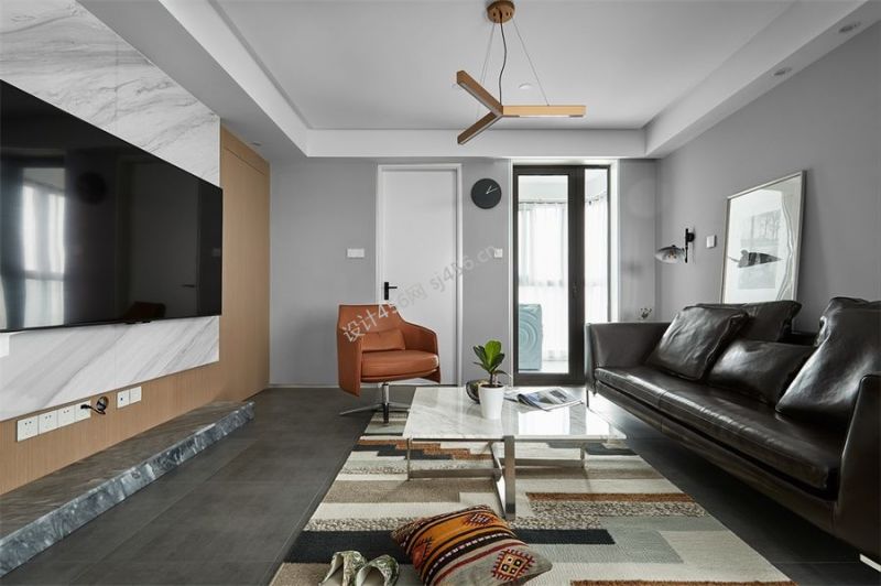 现代风格110㎡三居室客厅电视背景墙装修效果图