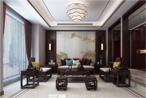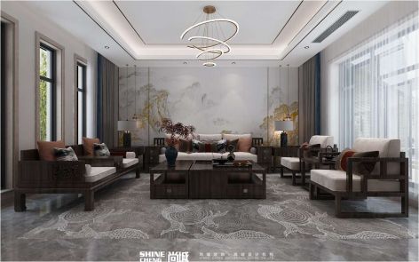 润英美庐新中式风格156平米装修案例风效果图