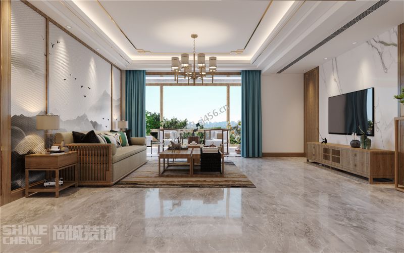 泰安尚城装饰 恒基名筑新中式风格138平米三居室装修案例