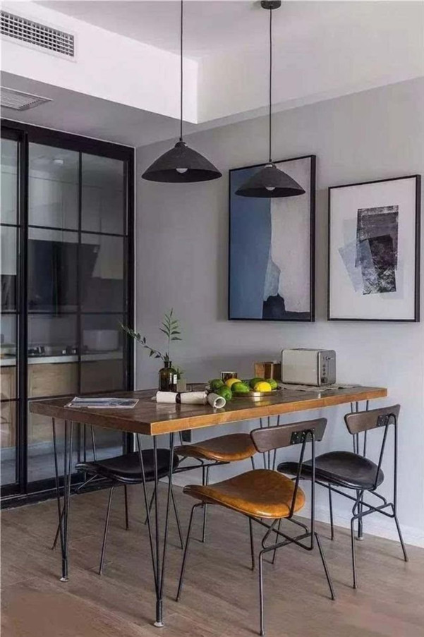餐厅一眼望去就能感受到酷酷的轻工业质感,深木色+黑色金属,简约时尚。