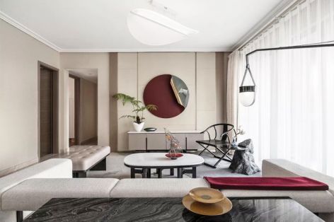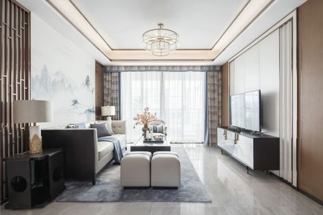 悦蓝山新中式风格138平米三居室装修案例风效果图