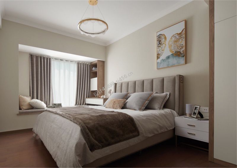 118平简约风格三居室卧室背景墙装修效果图