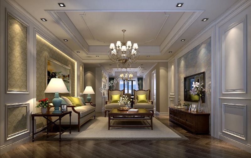简美式风格130平米三室客厅吊顶装潢效果图