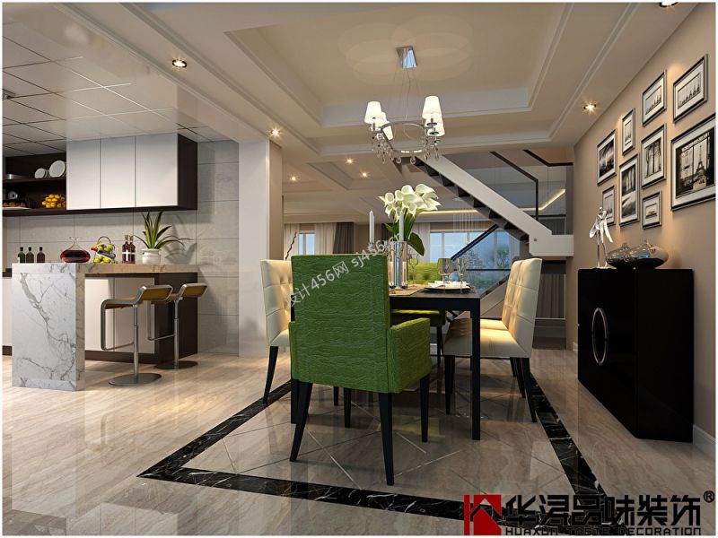 现代风格复式楼餐厅吊顶灯具装修设计图